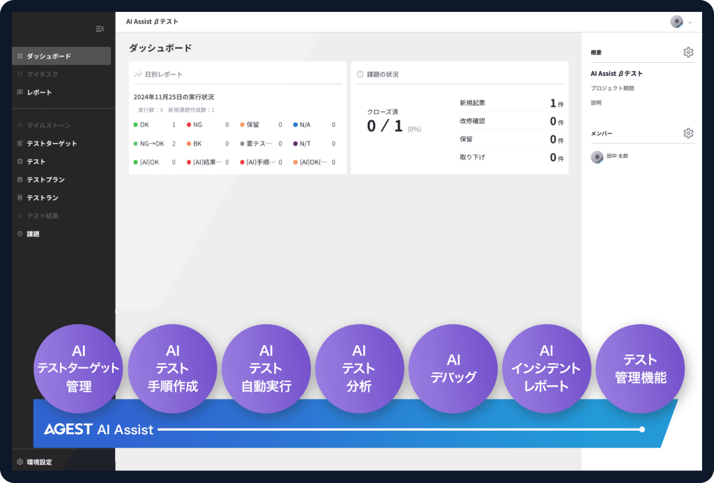 テストの設計から実施、レポート作成までAIがアシスト